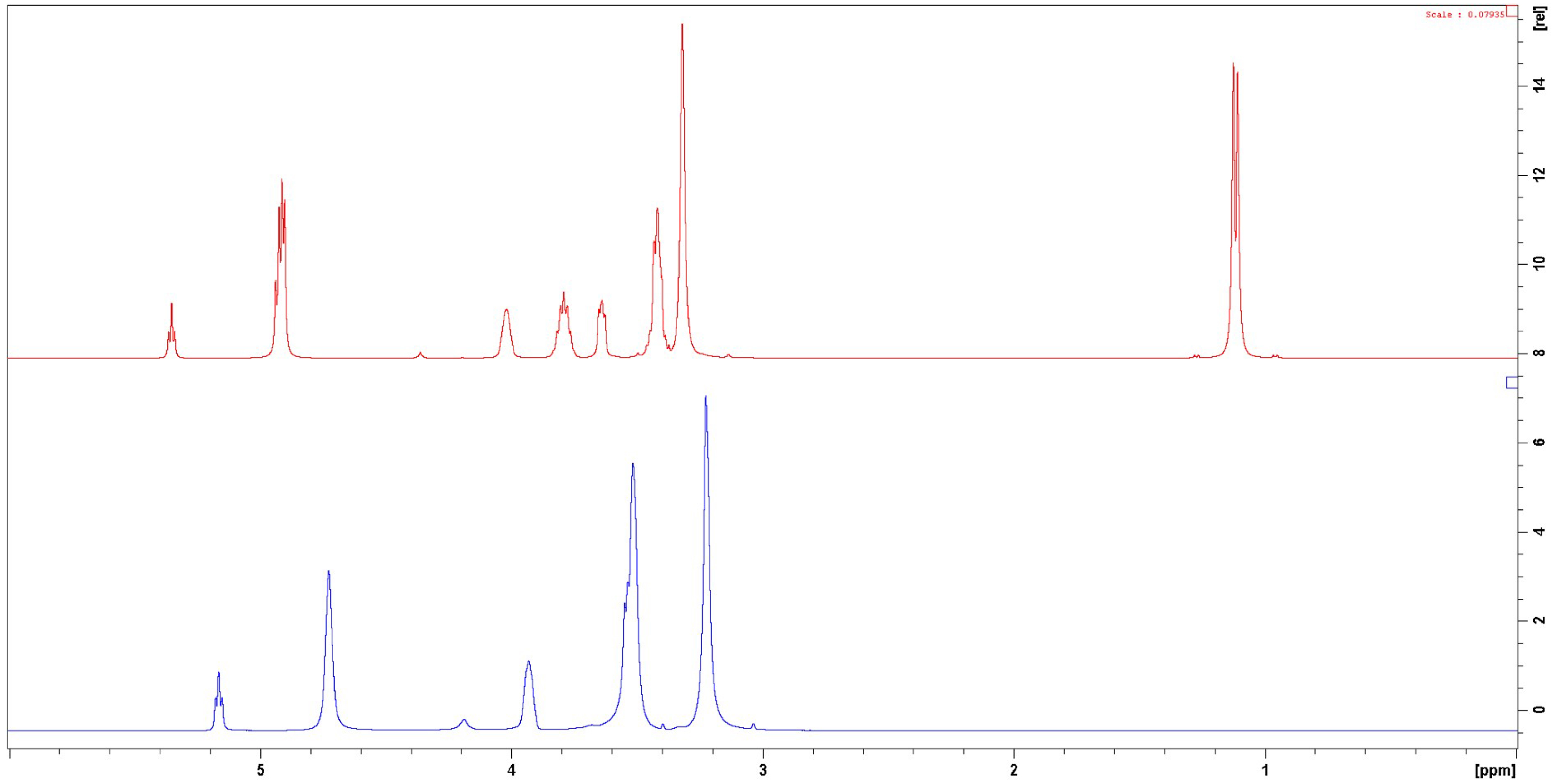 1H NMR spectra of Pr 1:3 (top) and Et 1:2 (bottom).
