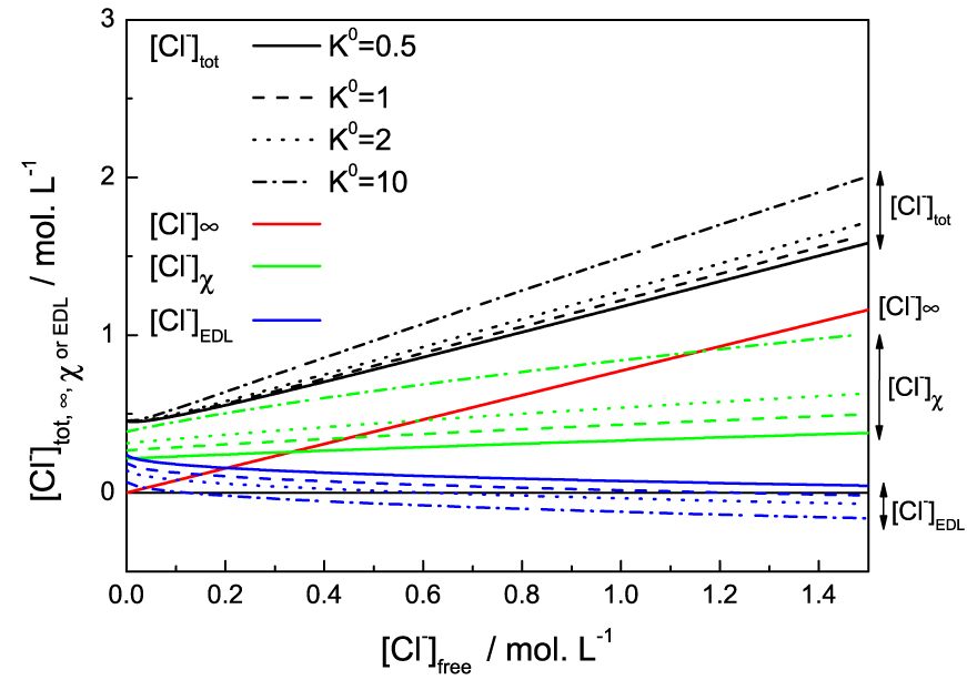 This result can then be compared with those obtained using an Electrical Double Layer (EDL) model with charge regulation. The total chloride concentration reads