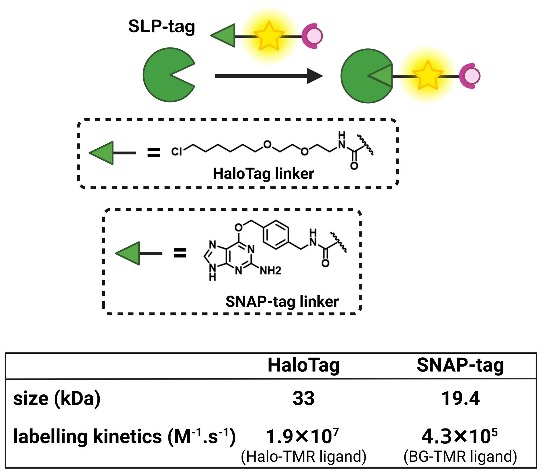 Comparison of HaloTag and SNAP-tag strategies for subcellular bioimaging.