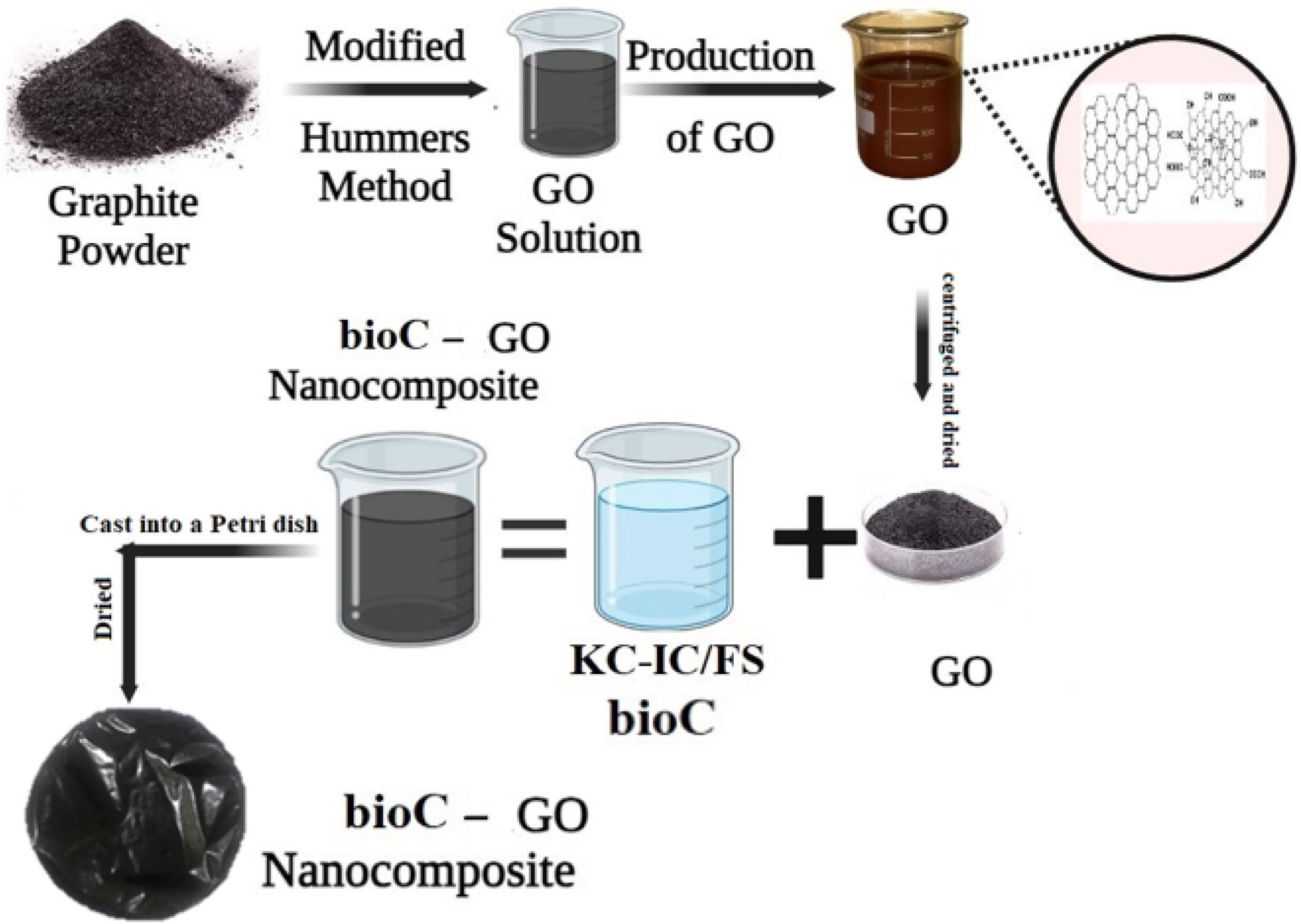 Schematic illustration of the synthesis process of bioC–GO nanocomposites.