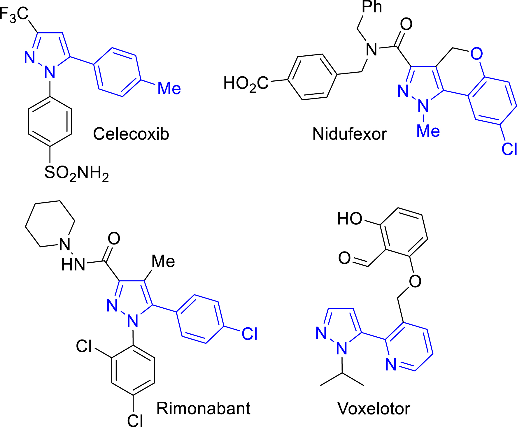 Several pharmaceutical compounds possess a 5-(hetero)arylpyrazole unit [1]. Examples include celecoxib, a nonsteroidal anti-inflammatory drug, and nidufexor, an experimental treatment for non-alcoholic steatohepatitis (Figure 1). Other examples include rimonabant, a 5-(4-chlorophenyl)pyrazole, which has been shown to have anti-obesity properties, and voxelotor, a 2-(pyrazol-5-yl)pyridine, which has been found to be beneficial in the treatment of sickle cell disease (Figure 1). While numerous approaches have been reported for the synthesis of substituted pyrazoles [2, 3], there remains a need for the development of simple and straightforward methods for the synthesis of 5-arylpyrazoles.