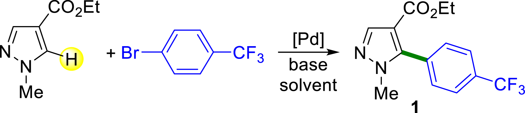 Influence of the reaction conditions on the Pd-catalyzed arylation of ethyl 1-methylpyrazole-4-carboxylate with 1-bromo-4-(trifluoromethyl)benzene