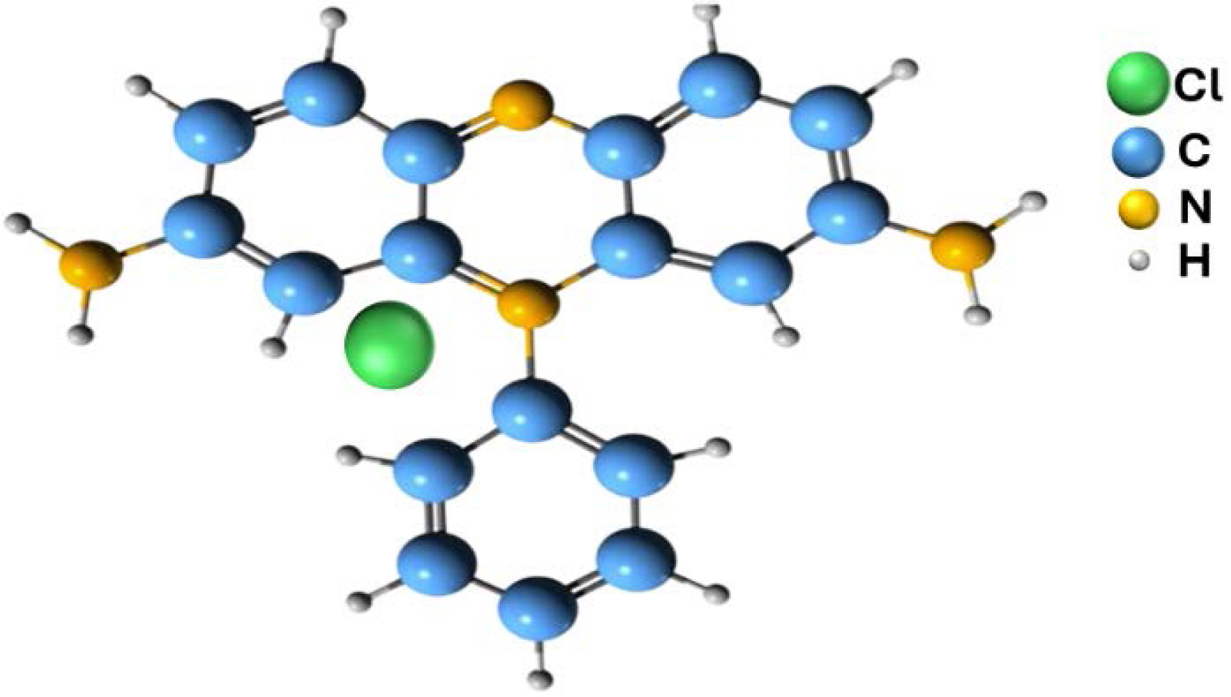 Analytical grade chemicals were used in the present work without any purification. Safranin O (𝜆max = 522 nm, 99.5%), sodium hydroxide (99%), sodium chloride (99.5%), and hydrochloric acid (37%) were supplied by Sigma-Aldrich. The experiments reported in this paper used SO as the adsorbate, the chemical structure of which is shown in Figure 1.