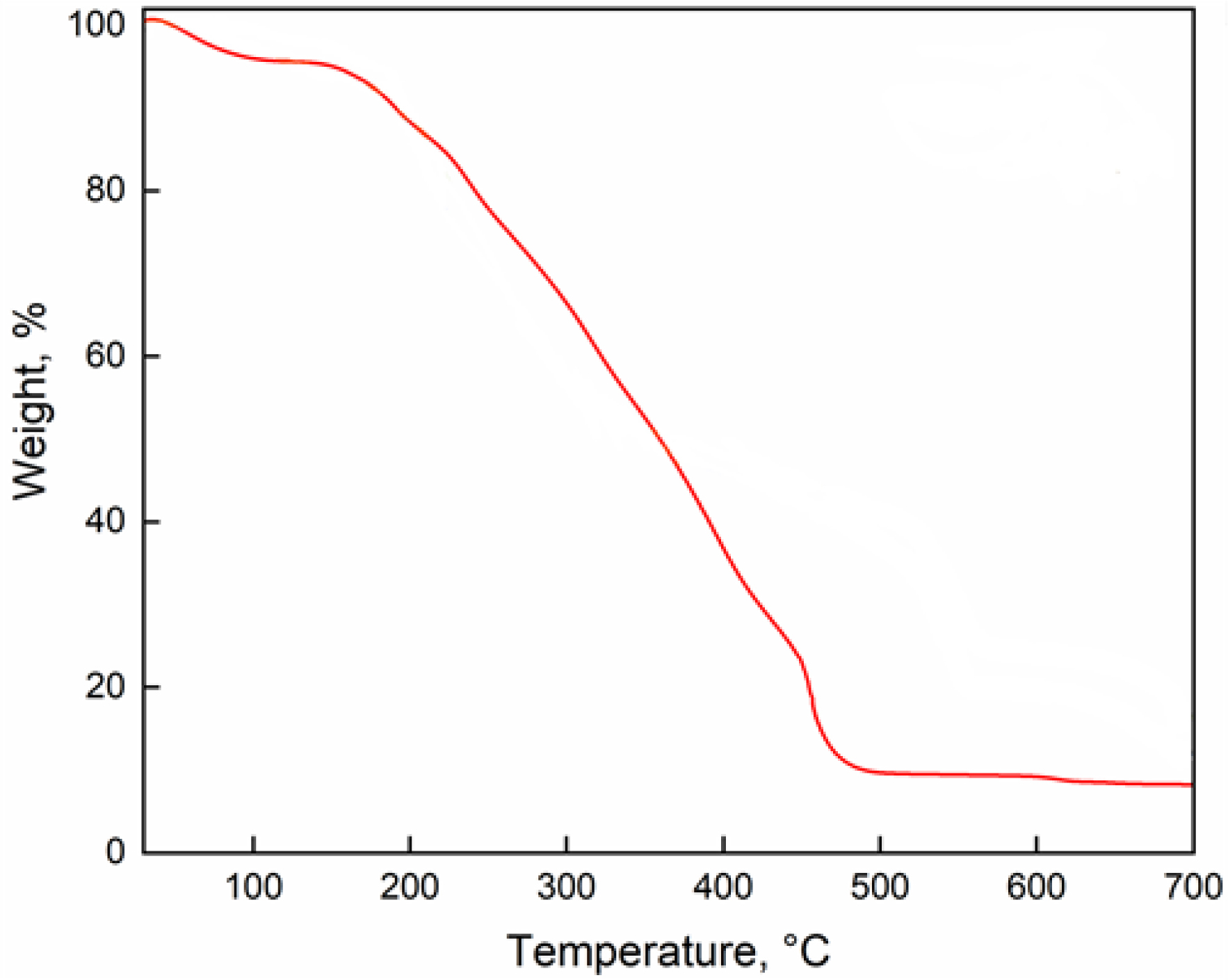Thermogravimetric analysis (TGA) was conducted in an air atmosphere using a Mettler TC-10 apparatus, from 30 to 700 °C, at a heating rate of 10 °C/min.