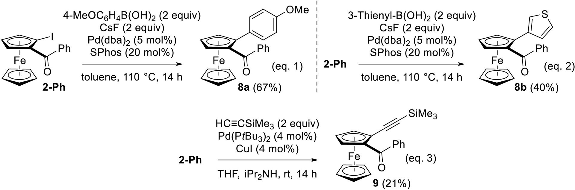 Since the discovery and the structure determination of the parent molecule [1, 2, 3, 4], ferrocenes have attracted considerable interest from synthetic chemists due to their numerous applications [5, 6, 7, 8, 9, 10, 11, 12, 13], such as catalysis [14, 15, 16, 17], materials science [18, 19], molecular sensing [20, 21], and bioorganometallic chemistry [22, 23, 24, 25]. In addition to monosubstituted ferrocenes, which can be synthesized from ferrocene via aromatic electrophilic substitution [26] or deprotometalation/trapping sequences [27, 28], polysubstituted structures may be required for targeted applications [29, 30, 31, 32, 33]. Among the most commonly used motifs, 1,1′-disubstituted derivatives are often obtained by double deprotolithiation of ferrocene [34], while 1,2-disubstituted derivatives are typically prepared by directed functionalization of monosubstituted ferrocenes [35, 36, 37, 38].