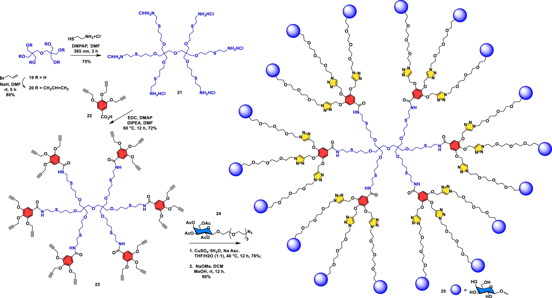 [88] A. K. Agrahari; M. K. Jaiswal; M. S. Yadav; V. K. Tiwari CuAAC mediated synthesis of cyclen cored glycodendrimers of high sugar tethers at low generation, Carbohydr. Res., Volume 508 (2021), 108403 | DOI