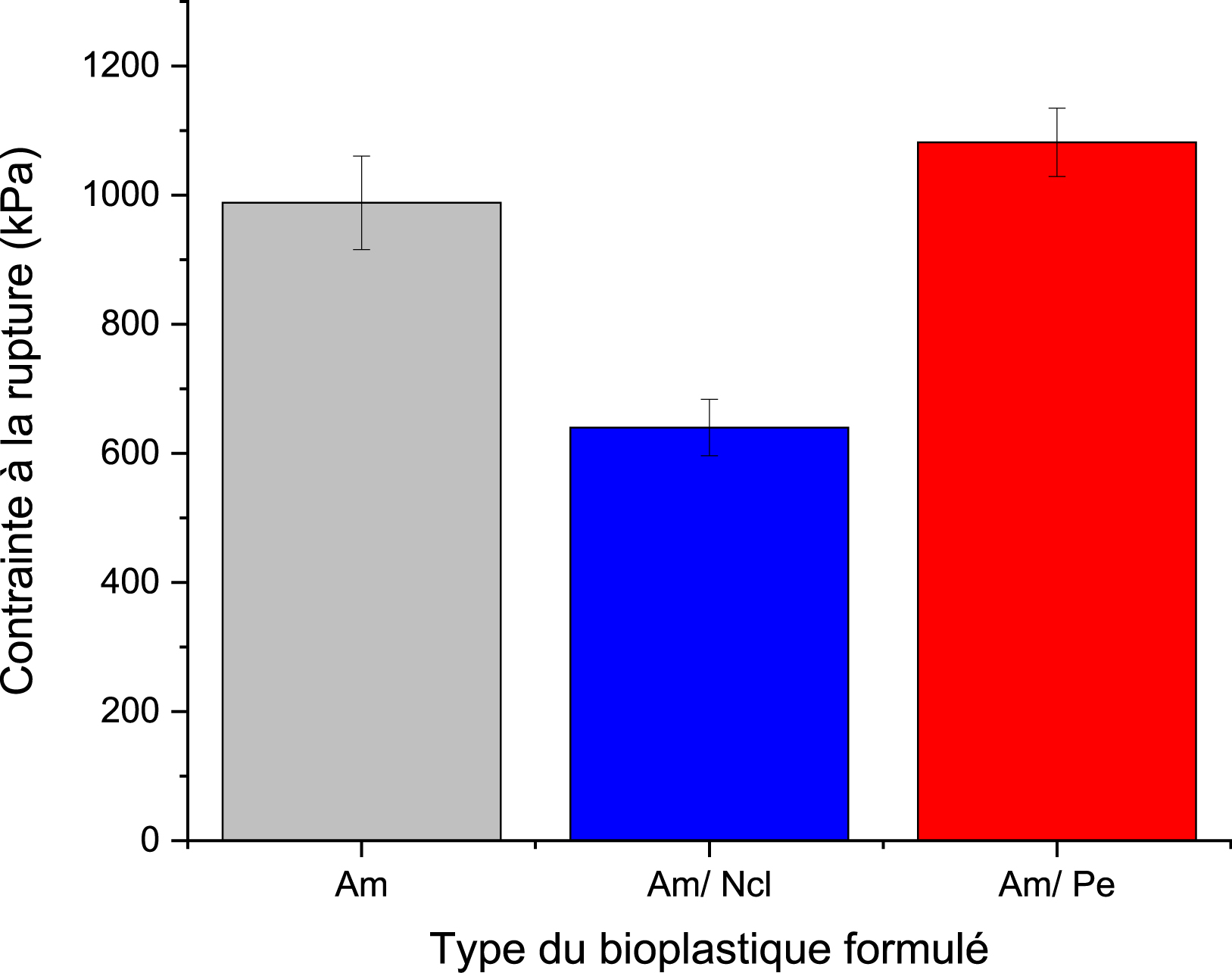 Contrainte à la rupture de divers bioplastiques formulés.