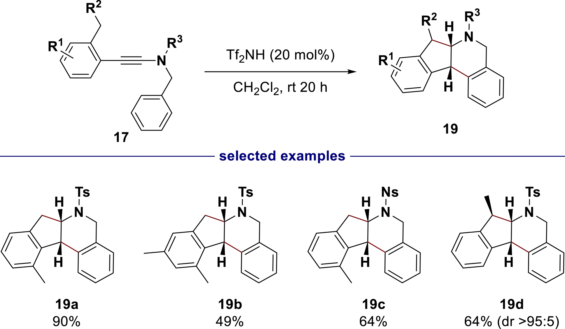 Selected examples of N-containing chiral tetracycles 19 generated from ynamides 17 in the presence of catalytic amounts of Tf2NH (adapted/redrawn from [1]).