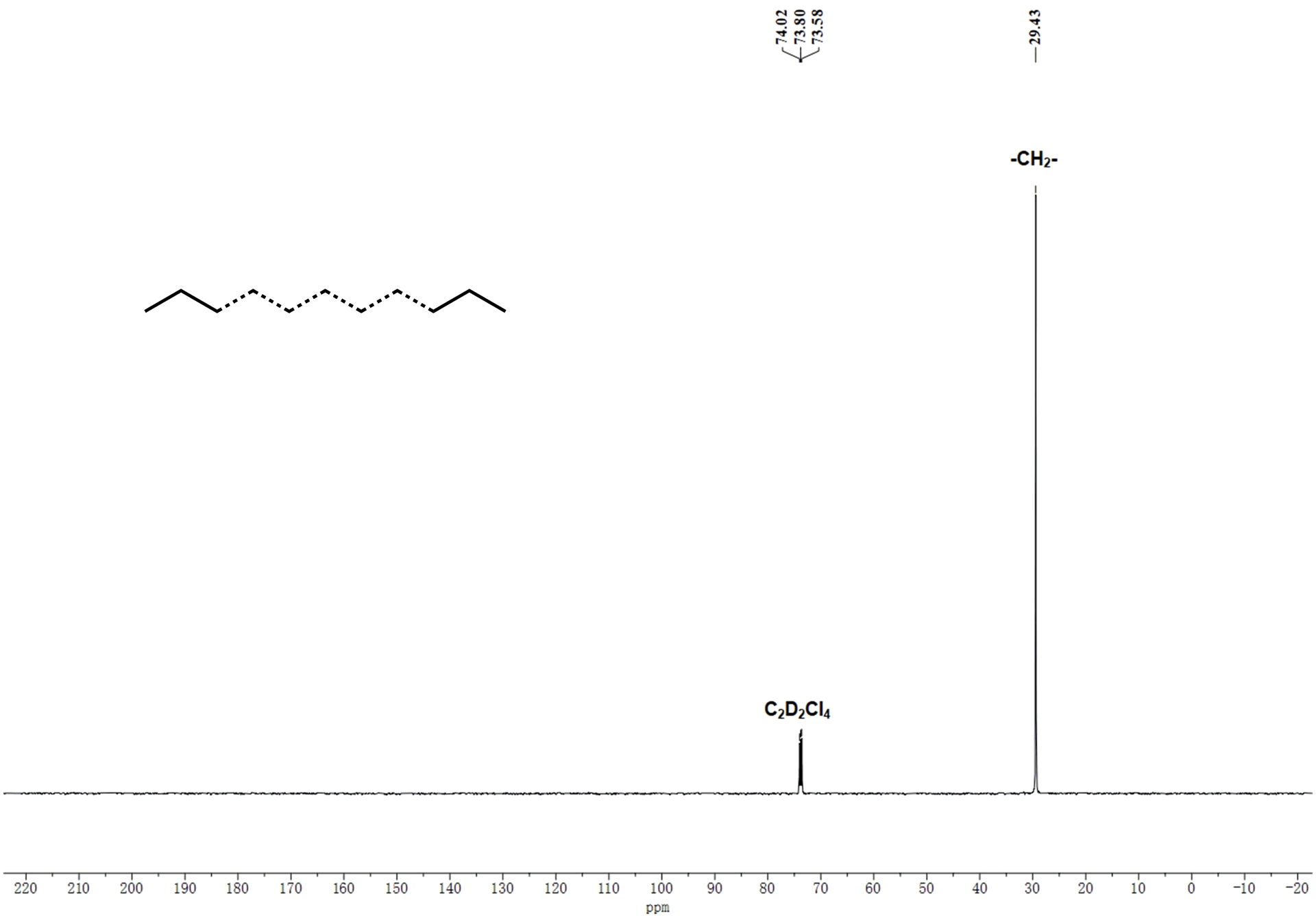 13C NMR spectrum of the PE sample produced using Co1/MAO as catalyst at 60 °C (entry 7, Table 2); recorded at 100 °C in 1,1,2,2-tetrachloroethane-d2.