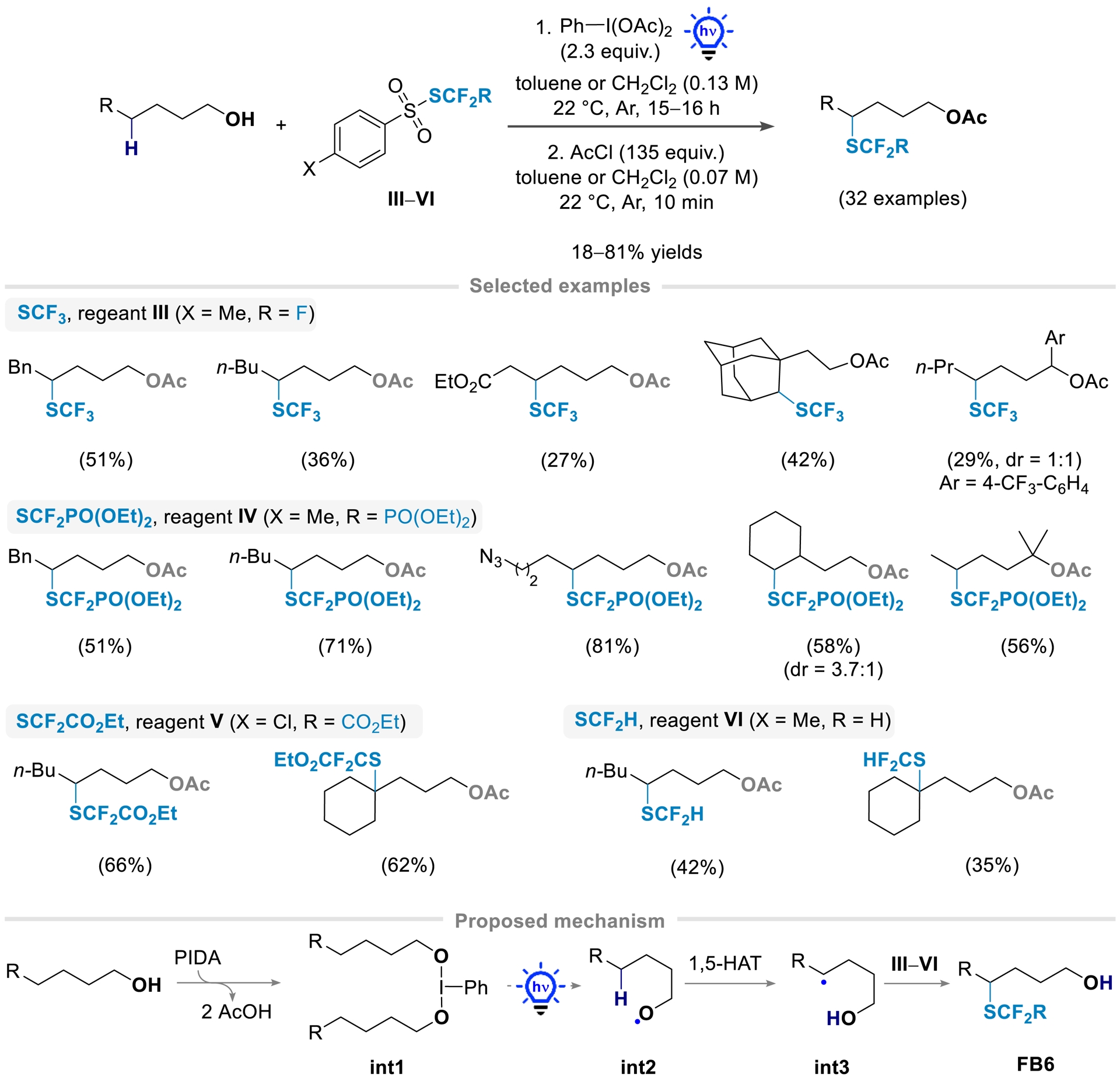 1,5-HAT enabled the construction of a carbon–SCF2R bond on aliphatic alcohols at a remote position.