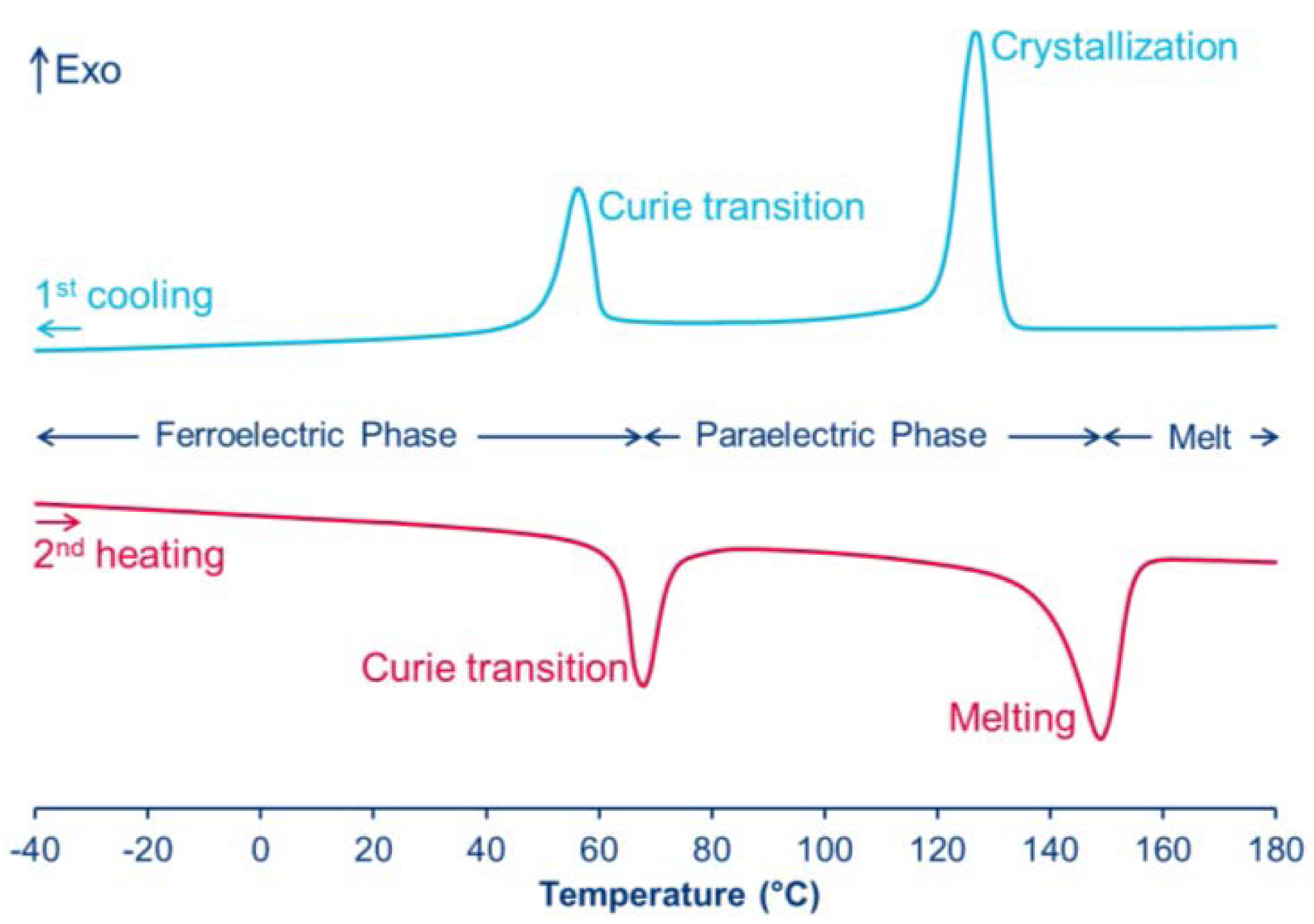DSC thermograms of poly(VDF64-ter-TrFE35-ter-MAF1) terpolymer (reproduced with permission from RSC [41]).