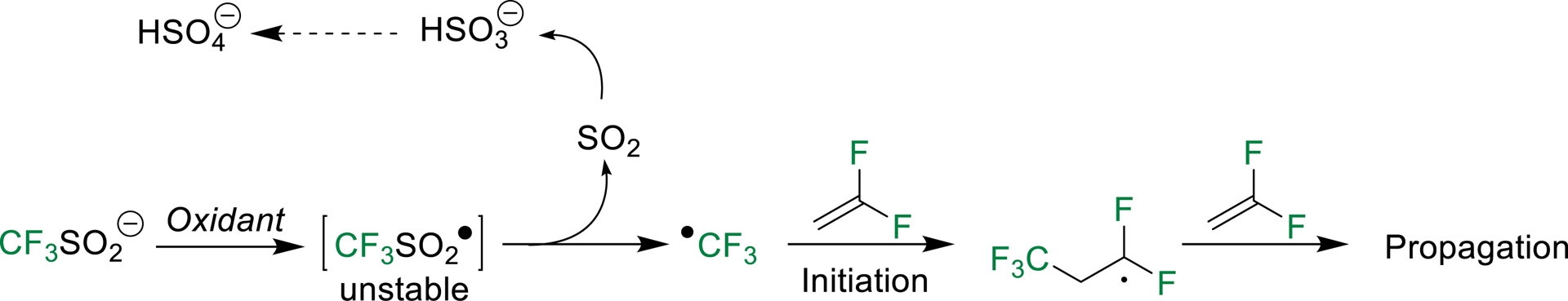 Mechanism of oxidation of trifluoromethyl sulfinate, leading to the generation of ∙CF3 radicals [7].