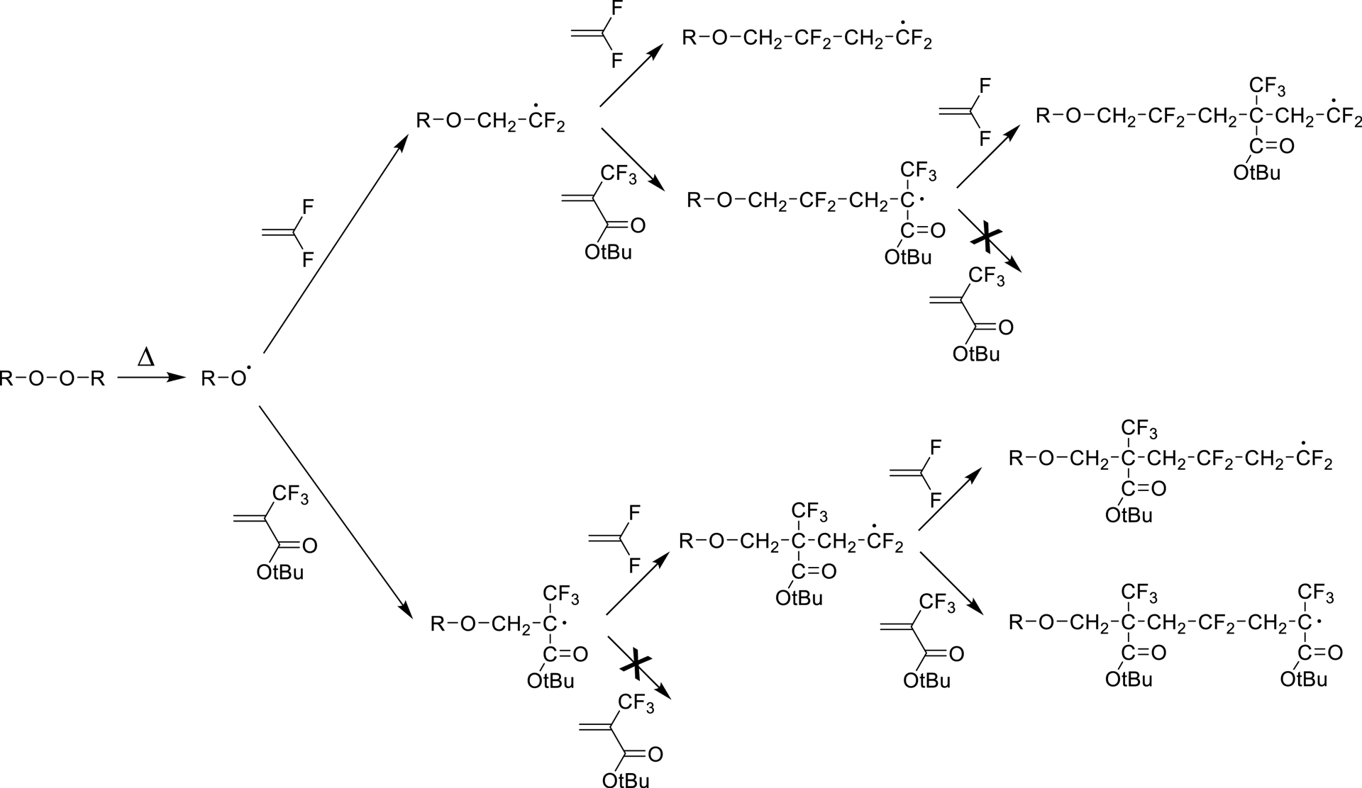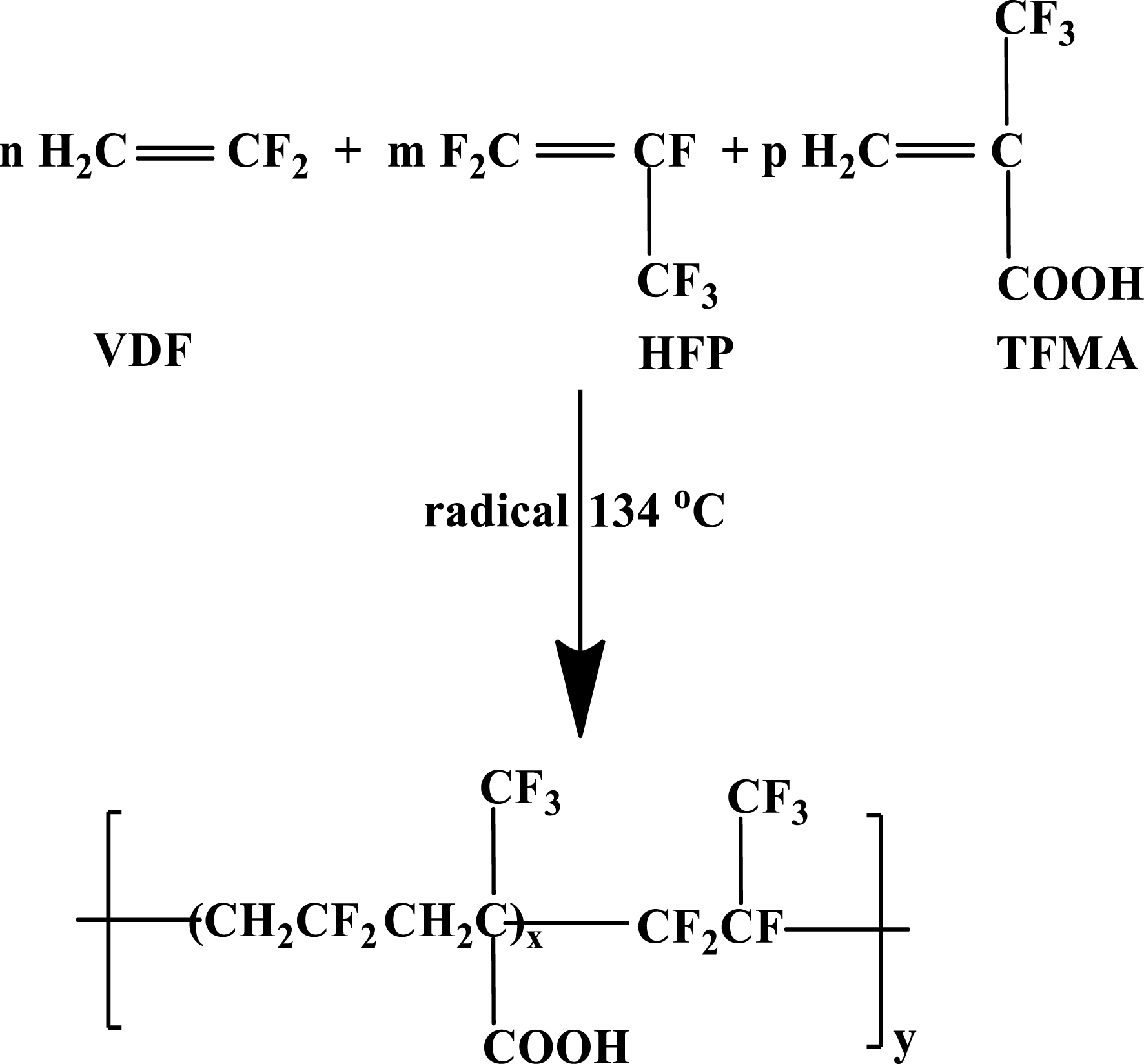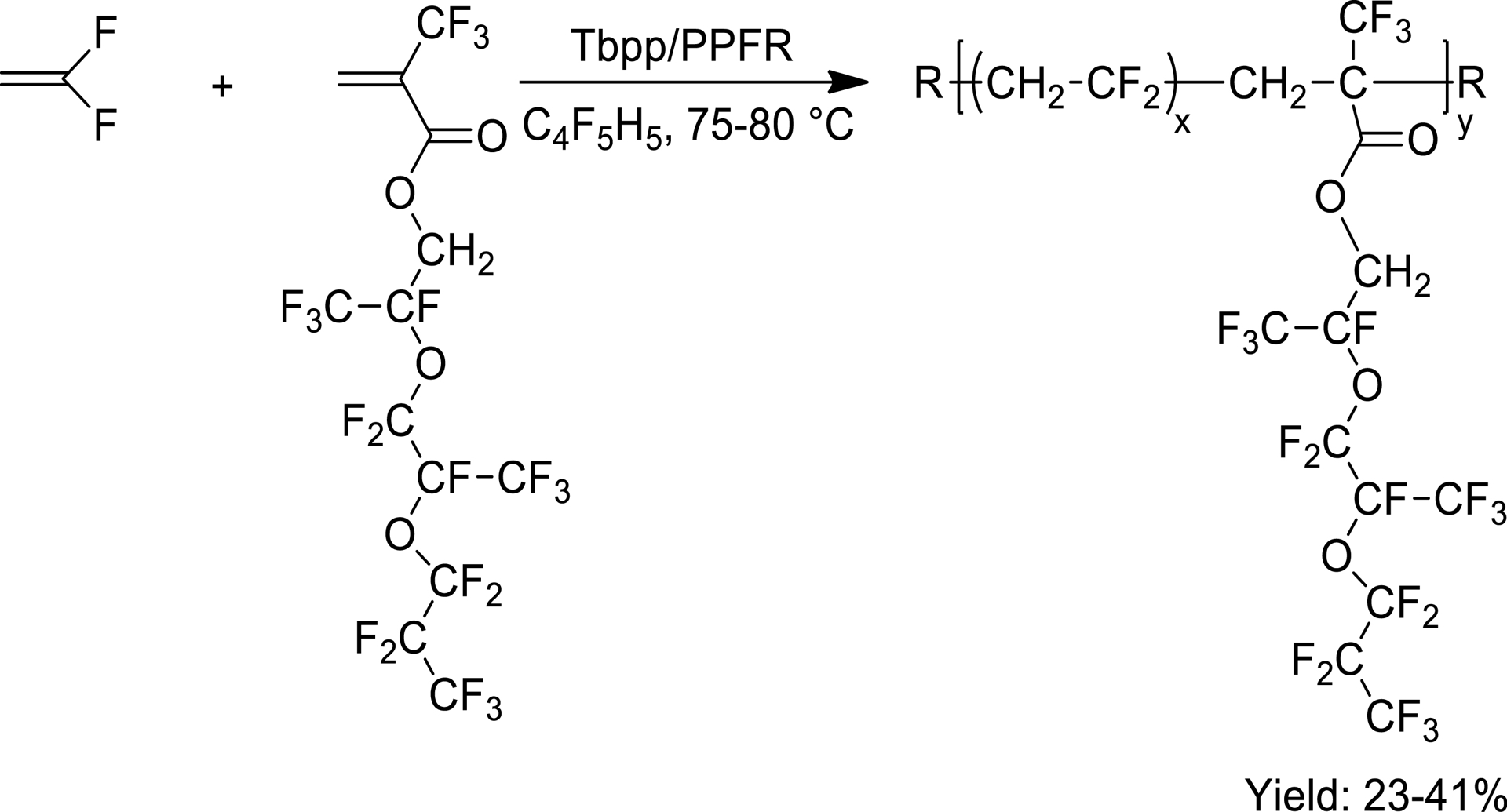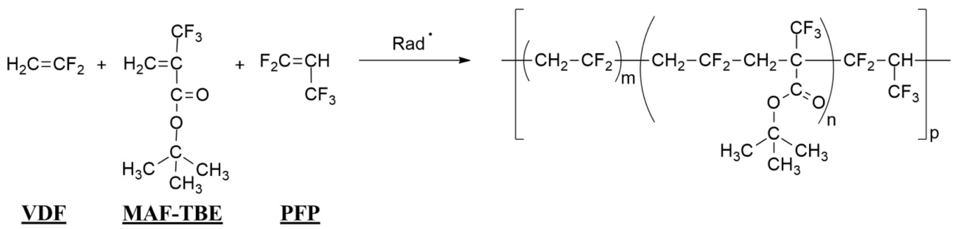 Radical terpolymerization of 2H-pentafluoropropylene (PFP) with VDF and tert-butyl 2-trifluoromethyl acrylate (MAF-TBE) [44].