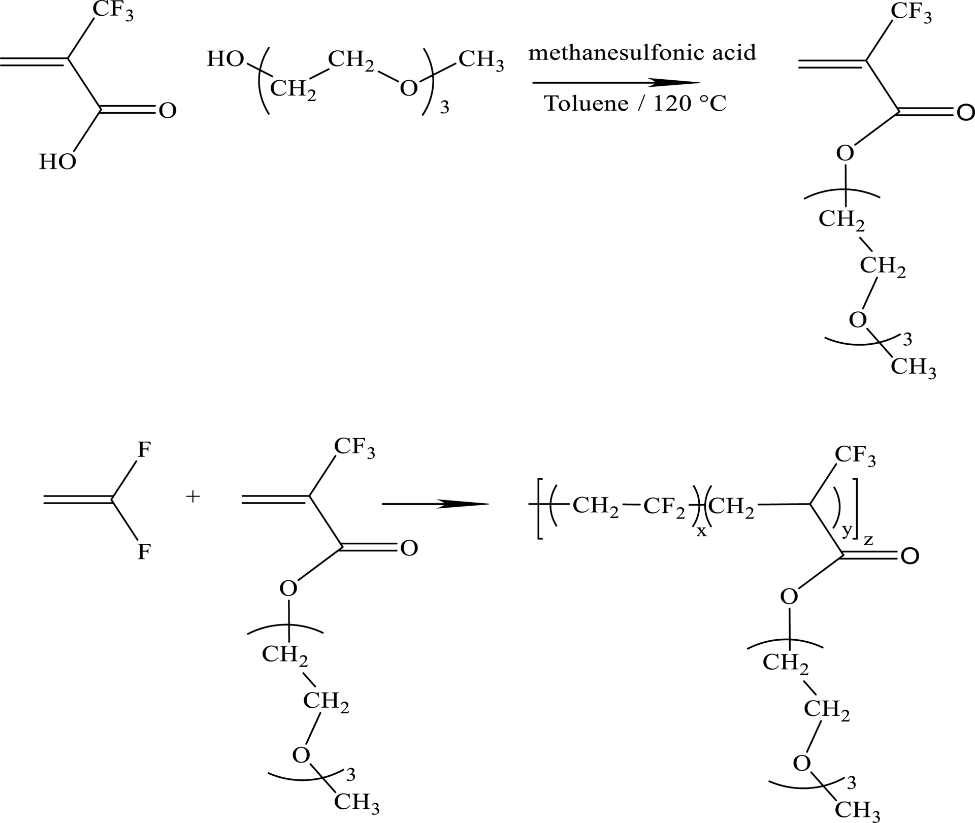 Synthesis of oligo(ethylene oxide) 2-trifluoromethyl acrylate and its radical copolymerization with VDF [29].