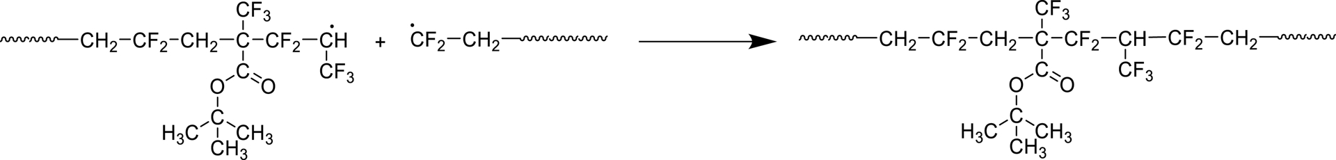 Recombination of growing macroradicals based on PFP and VDF end-units [44].