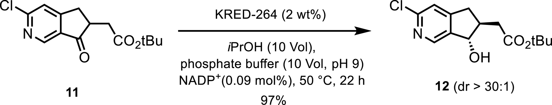 Merck reported a KRED process that involved a dynamic kinetic resolution for the synthesis of an intermediate for a GPR40 partial agonist [8]. Following assessments of the kinetic and free energy profiles of the KRED reaction, and by performing six rounds of enzyme engineering, KRED-264 provided the desired trans diastereomer in high yield and diastereomeric ratio (Scheme 6).