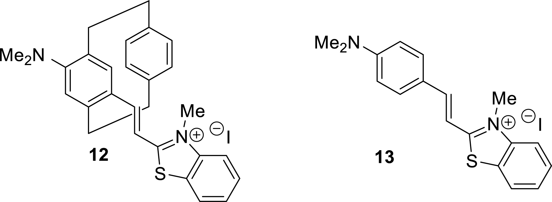 Cyanine dyes are well-established probes in chemical biology, frequently used for nucleic acid staining [60, 101, 102]. These dyes exhibit strong fluorescence turn-on behaviors upon target binding. We therefore set out to compare the luminescence responses of pCp-based cyanine dye 12 with those of analogous flat cyanine 13 in the presence of nucleic acids.