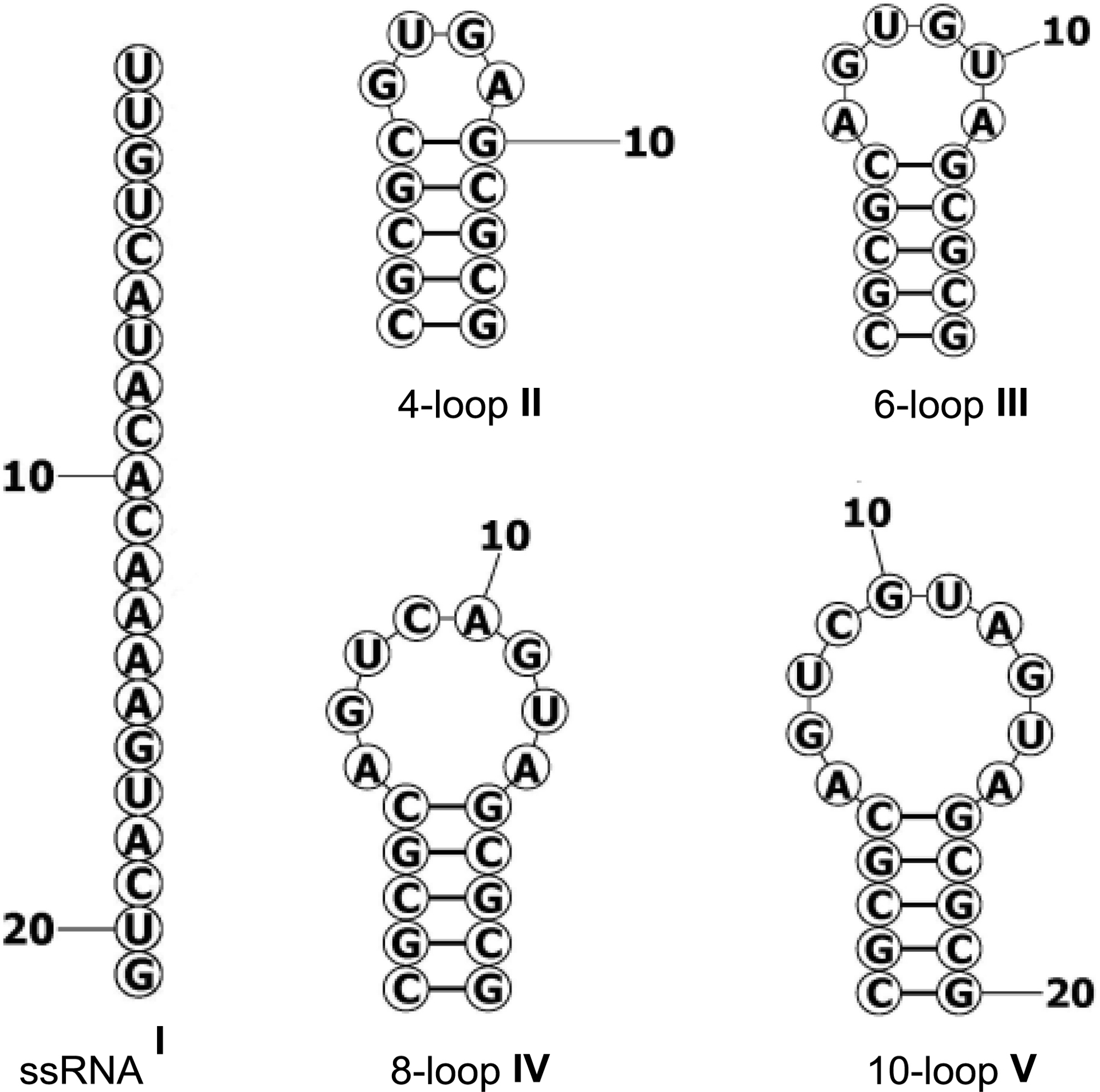 Examples of three-dimensional ligands preferentially targeting non-paired RNA structures.