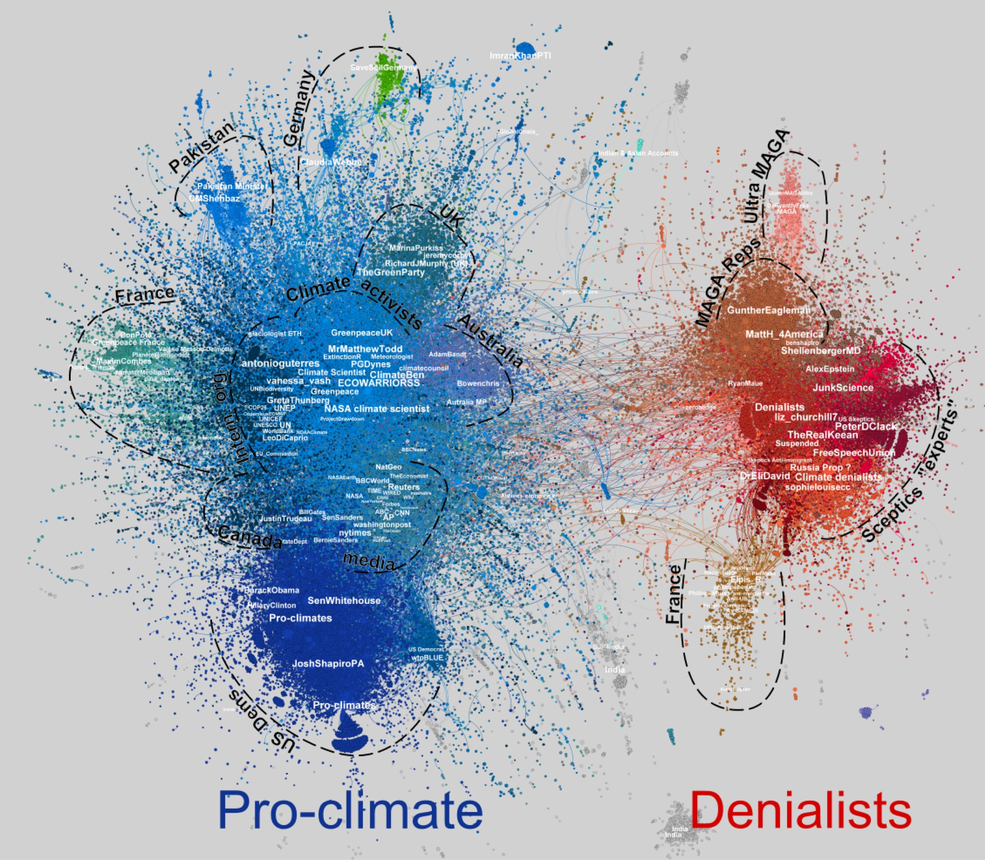 Beyond fact-checking, we’ve shown that there are structural differences between these deniers and pro-climate online communities, as well as between the circulation of misinformation and other climate change-related narratives.